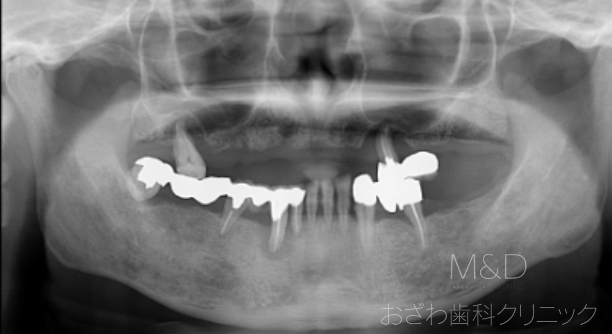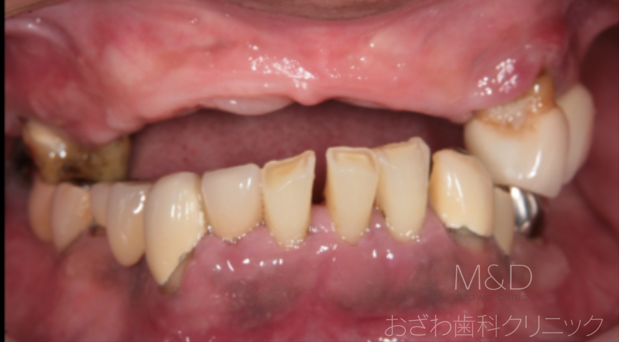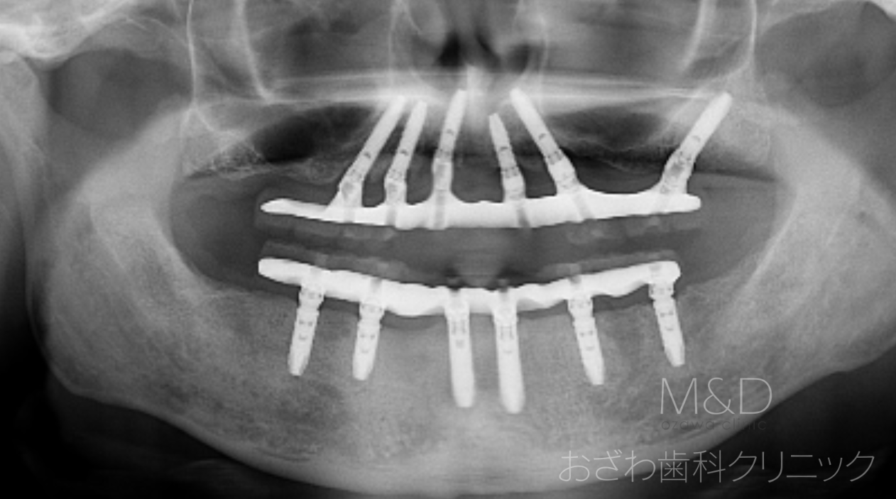 上下顎残存歯の抜歯、上顎6本、下顎6本インプラント